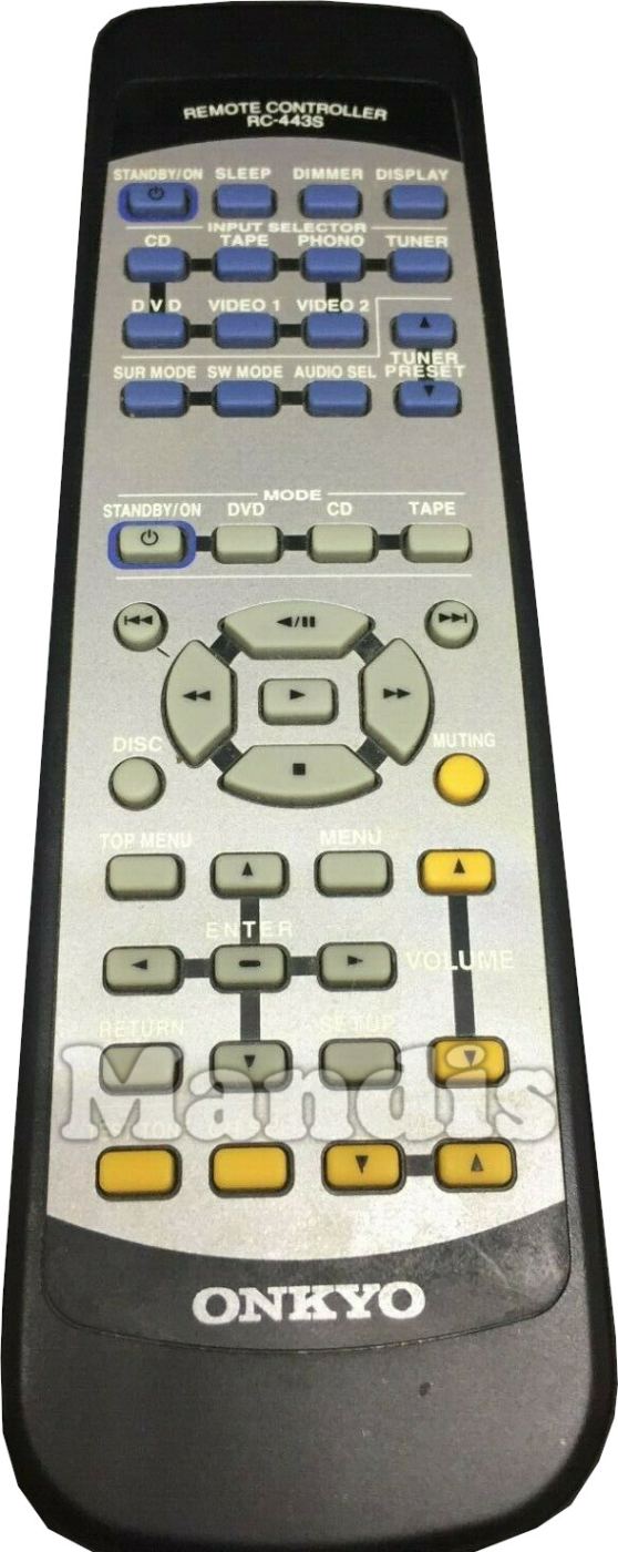 Comandament a distància original RC-443S (24140443) que serveix per cadena hi-fi de la marca Onkyo. Es tracta d'un model original de comandament a distància.
