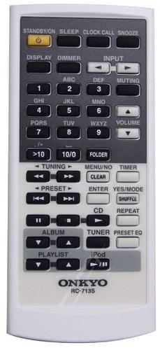 Comandament a distància original RC-713S (RRMCGA144AWSA) que serveix per cadena hi-fi de la marca Onkyo. Es tracta d'un model original de comandament a distància.