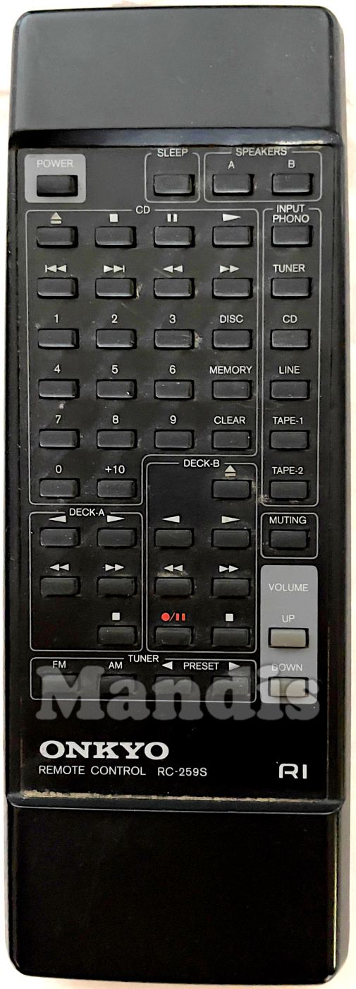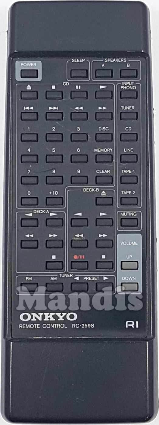 Comandament a distància original RC-259S de la marca Onkyo. Es tracta d'un model original de comandament a distància.
