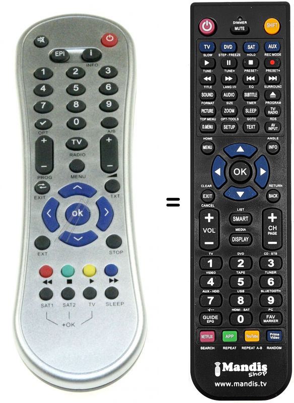 Comandament a distància que substitueix a l'original en totes les seves funcions.