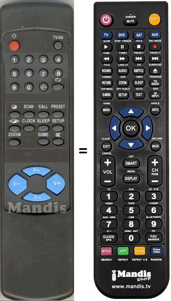 Comandament a distància que substitueix a l'original en totes les seves funcions. No es tracta d'un comandament universal sinó d'una còpia que substitueix l'original. Rebrà el comandament completament preparat per fer-lo funcionar només necessita posar-li les piles. No cal programar-lo. Té total garantia de que el comandament cumplirà amb les mateixes funcions de l'original.