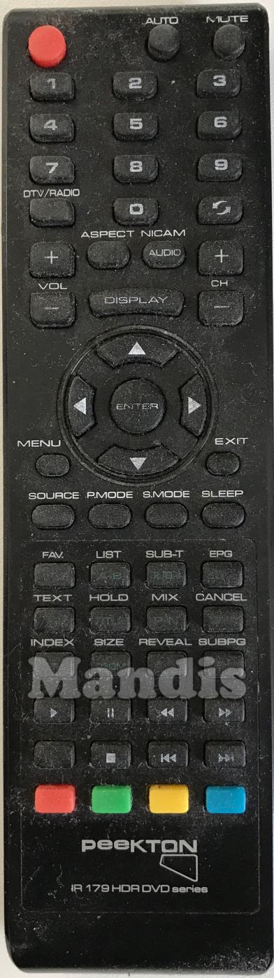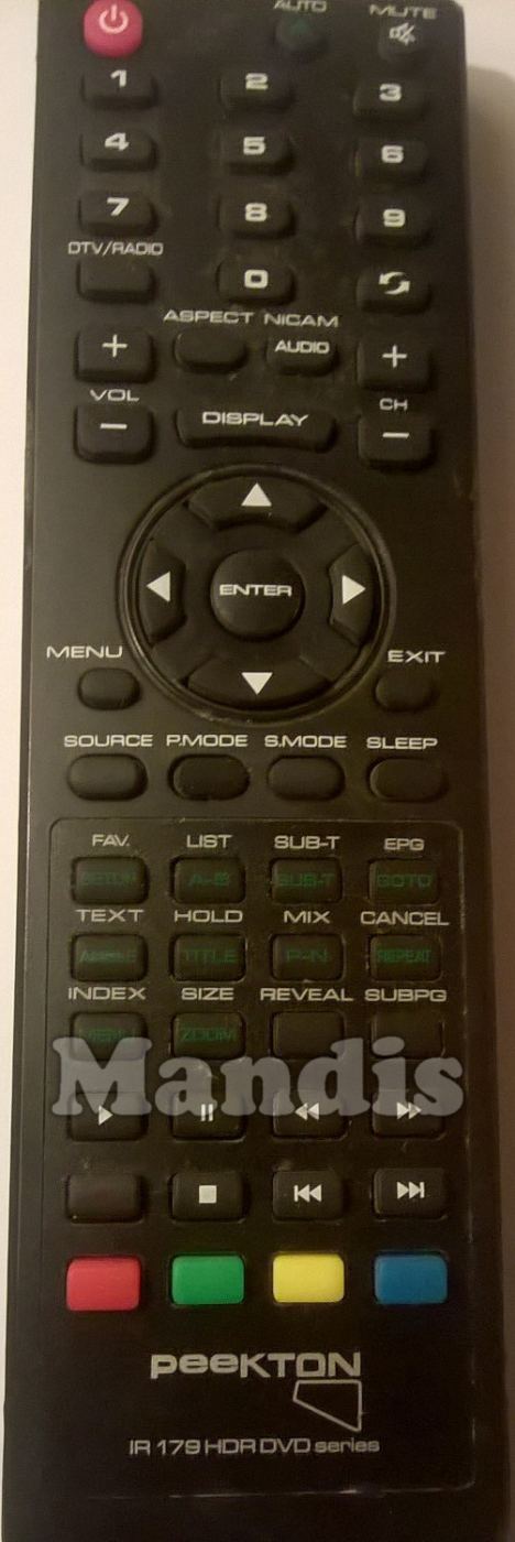 Comandament a distància original DVD series (IR 179HDR) que serveix per televisors de la marca PEEKTON. Es tracta d'un model original de comandament a distància.