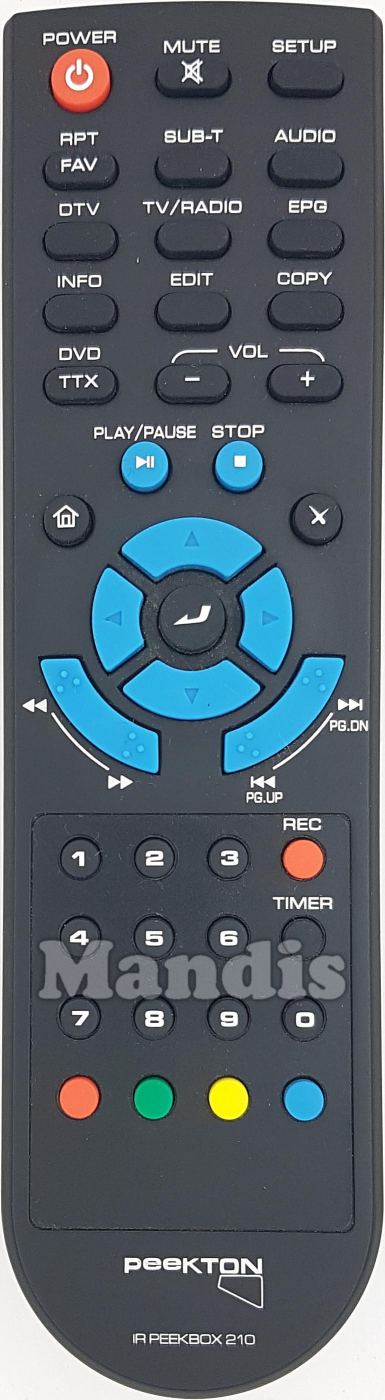 Comandament a distància original IR PEEKBOX 210 que serveix per televisors de la marca PEEKTON. Es tracta d'un model original de comandament a distància.