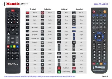 A continuació, us mostrarem la correspondència entre cada un dels botons del comandament original i el botó que realitza la mateixa funció en el comandament de substitució. En alguns casos, és possible que necessiti prémer la tecla SHIFT abans de prémer un altre botó per realitzar certes accions. Aquestes funcions addicionals sovint no s'utilitzen gaire i s'inclouen per facilitar la comprensió del comandament de substitució, o perquè el comandament original té més botons que el seu equivalent.