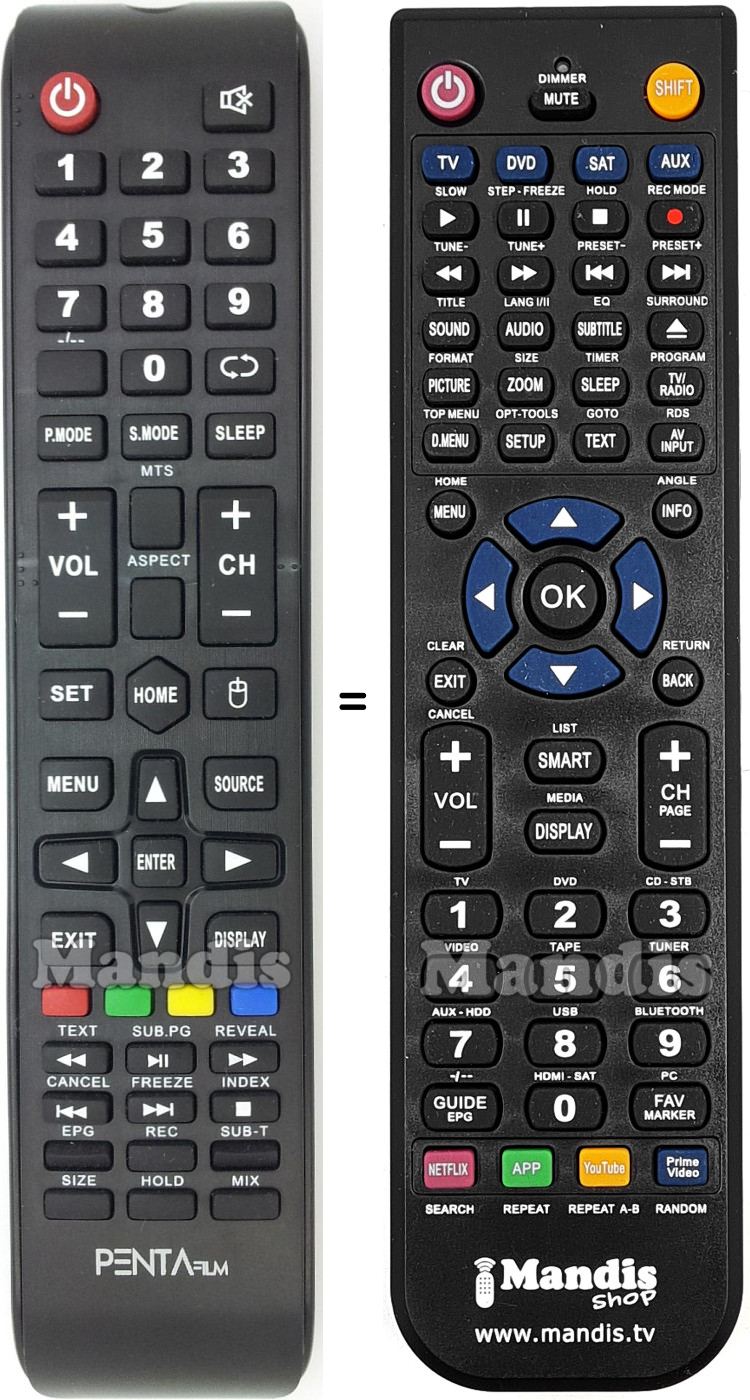 A continuació, us mostrarem la correspondència entre cada un dels botons del comandament original i el botó que realitza la mateixa funció en el comandament de substitució. En alguns casos, és possible que necessiti prémer la tecla SHIFT abans de prémer un altre botó per realitzar certes accions. Aquestes funcions addicionals sovint no s'utilitzen gaire i s'inclouen per facilitar la comprensió del comandament de substitució, o perquè el comandament original té més botons que el seu equivalent.