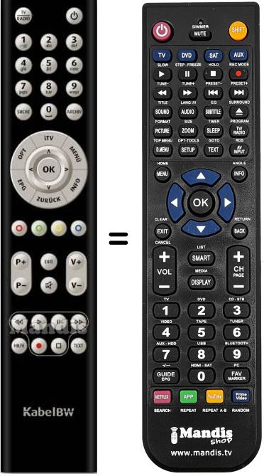 Comandament a distància que substitueix a l'original en totes les seves funcions. No es tracta d'un comandament universal sinó d'una còpia que substitueix l'original. Rebrà el comandament completament preparat per fer-lo funcionar només necessita posar-li les piles. No cal programar-lo. Té total garantia de que el comandament cumplirà amb les mateixes funcions de l'original.