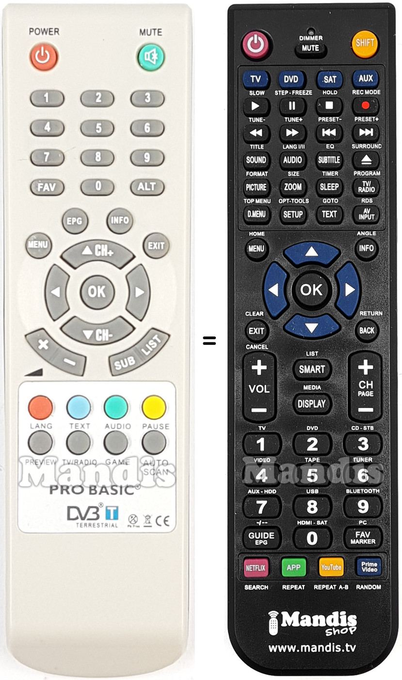A continuació, us mostrarem la correspondència entre cada un dels botons del comandament original i el botó que realitza la mateixa funció en el comandament de substitució. En alguns casos, és possible que necessiti prémer la tecla SHIFT abans de prémer un altre botó per realitzar certes accions. Aquestes funcions addicionals sovint no s'utilitzen gaire i s'inclouen per facilitar la comprensió del comandament de substitució, o perquè el comandament original té més botons que el seu equivalent.