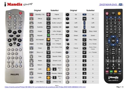 A continuació, us mostrarem la correspondència entre cada un dels botons del comandament original i el botó que realitza la mateixa funció en el comandament de substitució. En alguns casos, és possible que necessiti prémer la tecla SHIFT abans de prémer un altre botó per realitzar certes accions. Aquestes funcions addicionals sovint no s'utilitzen gaire i s'inclouen per facilitar la comprensió del comandament de substitució, o perquè el comandament original té més botons que el seu equivalent.