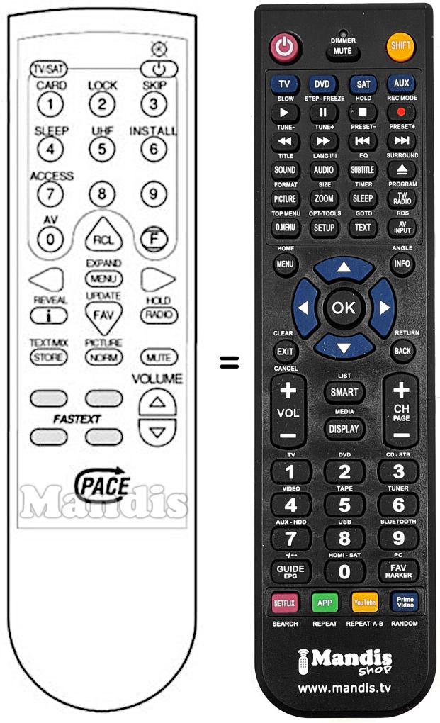 Comandament a distància que substitueix a l'original en totes les seves funcions.
