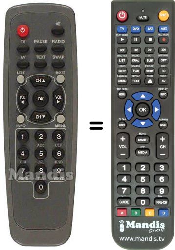 Aquest comandament a distància substitueix completament el teu REMCON1267 en totes les seves funcions. No és un comandament universal, sinó una còpia exacta del teu original.