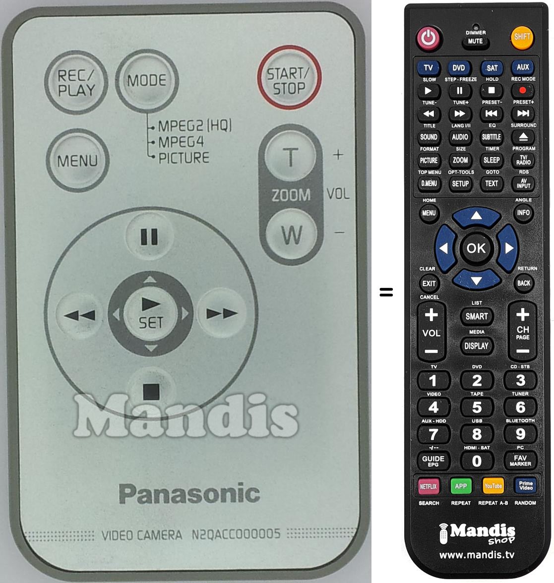Comandament a distància recanvi N2QACC000005 de la marca Panasonic.