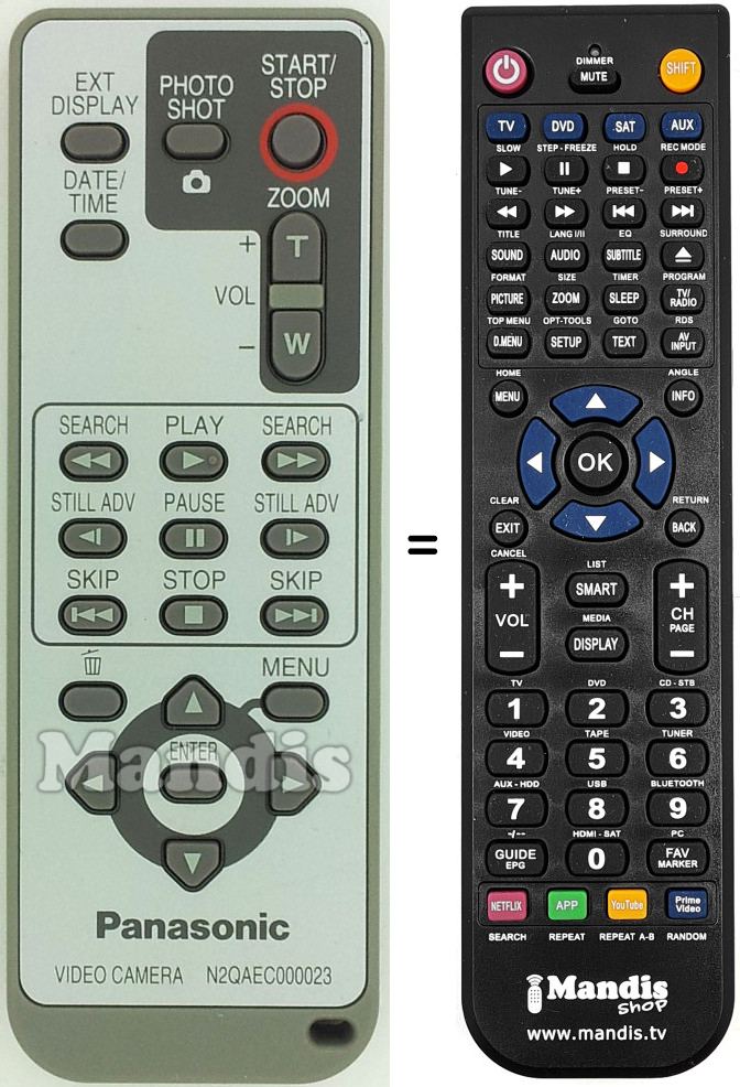 A continuació, us mostrarem la correspondència entre cada un dels botons del comandament original i el botó que realitza la mateixa funció en el comandament de substitució. En alguns casos, és possible que necessiti prémer la tecla SHIFT abans de prémer un altre botó per realitzar certes accions. Aquestes funcions addicionals sovint no s'utilitzen gaire i s'inclouen per facilitar la comprensió del comandament de substitució, o perquè el comandament original té més botons que el seu equivalent.