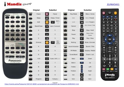 Aquest comandament a distància substitueix completament el teu EUR645401 en totes les seves funcions. No és un comandament universal, sinó una còpia exacta del teu original.