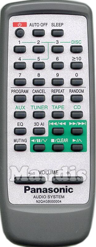 Comandament a distància original N2QAGB000004 que serveix per cadena hi-fi de la marca Panasonic. Es tracta d'un model original de comandament a distància.