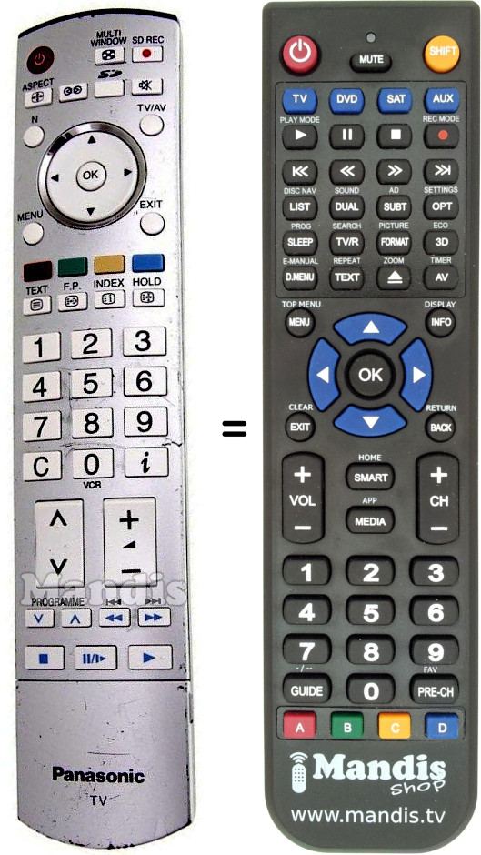 Aquest comandament a distància substitueix completament el teu N2QAYB000048 en totes les seves funcions. No és un comandament universal, sinó una còpia exacta del teu original.