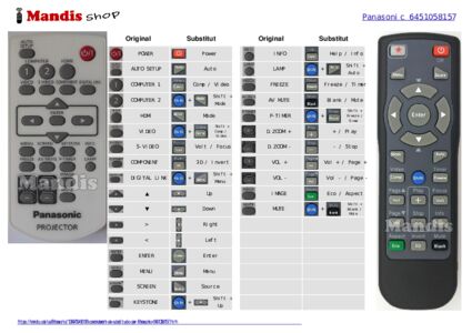 Comandament a distància recanvi D848532 de la marca Panasonic.
