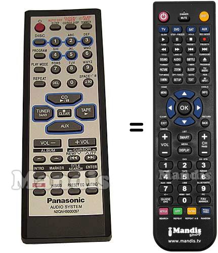 Aquest comandament a distància substitueix completament el teu N2QAHB000057 en totes les seves funcions. No és un comandament universal, sinó una còpia exacta del teu original.