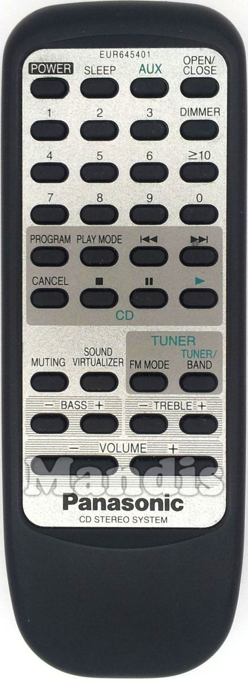 Comandament a distància original EUR645401 que serveix per cadena hi-fi de la marca Panasonic. Es tracta d'un model original de comandament a distància.