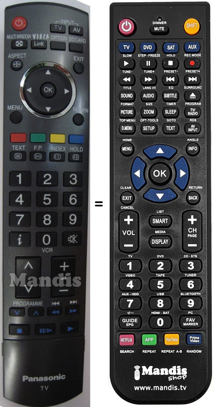 Comandament a distància que substitueix el comandament N2QAYB000116 en totes les seves funcions.