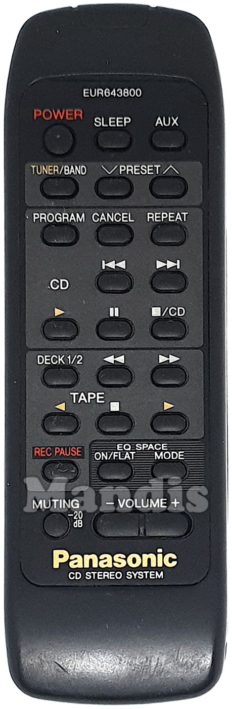 Comandament a distància original EUR643800 de la marca Panasonic. Es tracta d'un model original de comandament a distància.