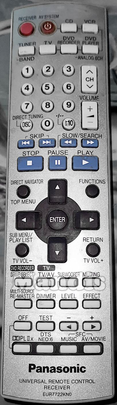 Comandaments equivalents que substitueixen en totes les seves funcions al comandament PANASONIC EUR7722KN0: