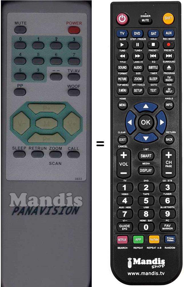 Comandament a distància que substitueix a l'original en totes les seves funcions.