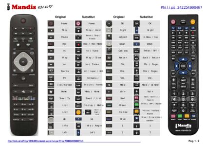 A continuació, us mostrarem la correspondència entre cada un dels botons del comandament original i el botó que realitza la mateixa funció en el comandament de substitució. En alguns casos, és possible que necessiti prémer la tecla SHIFT abans de prémer un altre botó per realitzar certes accions. Aquestes funcions addicionals sovint no s'utilitzen gaire i s'inclouen per facilitar la comprensió del comandament de substitució, o perquè el comandament original té més botons que el seu equivalent.