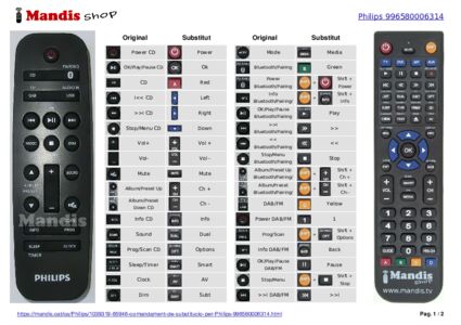 A continuació, us mostrarem la correspondència entre cada un dels botons del comandament original i el botó que realitza la mateixa funció en el comandament de substitució. En alguns casos, és possible que necessiti prémer la tecla SHIFT abans de prémer un altre botó per realitzar certes accions. Aquestes funcions addicionals sovint no s'utilitzen gaire i s'inclouen per facilitar la comprensió del comandament de substitució, o perquè el comandament original té més botons que el seu equivalent.