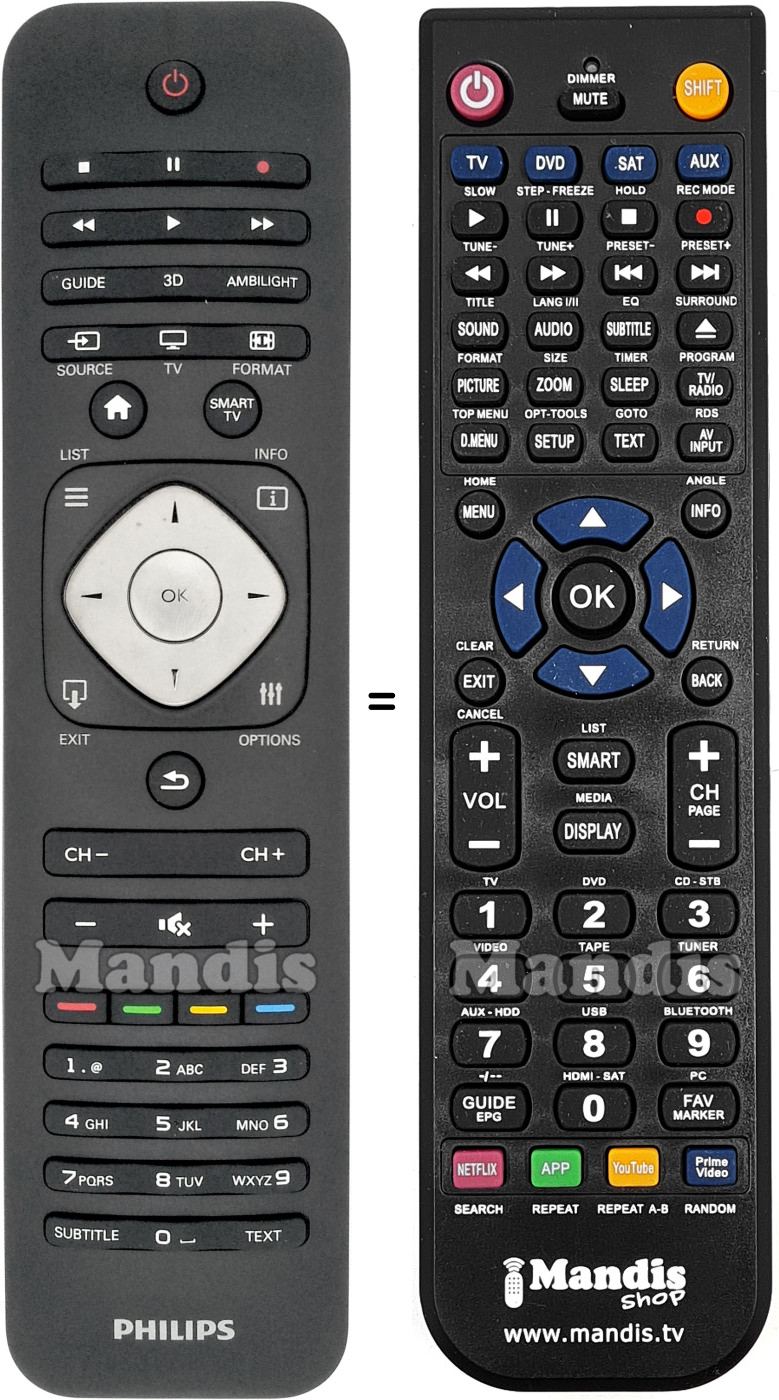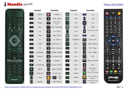 A continuació, us mostrarem la correspondència entre cada un dels botons del comandament original i el botó que realitza la mateixa funció en el comandament de substitució. En alguns casos, és possible que necessiti prémer la tecla SHIFT abans de prémer un altre botó per realitzar certes accions. Aquestes funcions addicionals sovint no s'utilitzen gaire i s'inclouen per facilitar la comprensió del comandament de substitució, o perquè el comandament original té més botons que el seu equivalent.