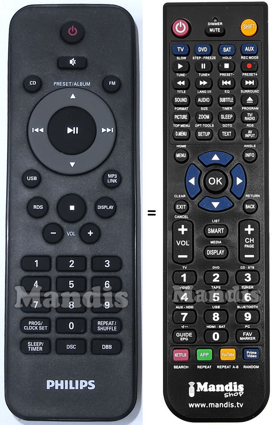 A continuació, us mostrarem la correspondència entre cada un dels botons del comandament original i el botó que realitza la mateixa funció en el comandament de substitució. En alguns casos, és possible que necessiti prémer la tecla SHIFT abans de prémer un altre botó per realitzar certes accions. Aquestes funcions addicionals sovint no s'utilitzen gaire i s'inclouen per facilitar la comprensió del comandament de substitució, o perquè el comandament original té més botons que el seu equivalent.