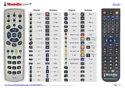Aquest comandament a distància substitueix completament el teu RC 2183 (313P10821831) en totes les seves funcions. No és un comandament universal, sinó una còpia exacta del teu original.