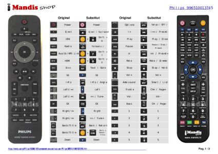 A continuació, us mostrarem la correspondència entre cada un dels botons del comandament original i el botó que realitza la mateixa funció en el comandament de substitució. En alguns casos, és possible que necessiti prémer la tecla SHIFT abans de prémer un altre botó per realitzar certes accions. Aquestes funcions addicionals sovint no s'utilitzen gaire i s'inclouen per facilitar la comprensió del comandament de substitució, o perquè el comandament original té més botons que el seu equivalent.