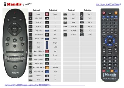 A continuació, us mostrarem la correspondència entre cada un dels botons del comandament original i el botó que realitza la mateixa funció en el comandament de substitució. En alguns casos, és possible que necessiti prémer la tecla SHIFT abans de prémer un altre botó per realitzar certes accions. Aquestes funcions addicionals sovint no s'utilitzen gaire i s'inclouen per facilitar la comprensió del comandament de substitució, o perquè el comandament original té més botons que el seu equivalent.