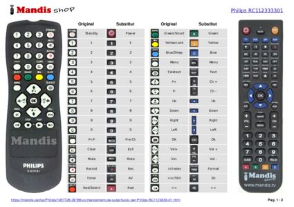 Aquest comandament a distància substitueix completament el teu RC1123333/01 (862266712101) en totes les seves funcions. No és un comandament universal, sinó una còpia exacta del teu original.