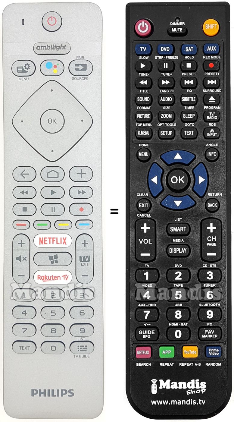 A continuació, us mostrarem la correspondència entre cada un dels botons del comandament original i el botó que realitza la mateixa funció en el comandament de substitució. En alguns casos, és possible que necessiti prémer la tecla SHIFT abans de prémer un altre botó per realitzar certes accions. Aquestes funcions addicionals sovint no s'utilitzen gaire i s'inclouen per facilitar la comprensió del comandament de substitució, o perquè el comandament original té més botons que el seu equivalent.