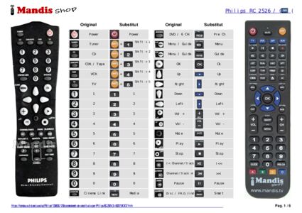 A continuació, us mostrarem la correspondència entre cada un dels botons del comandament original i el botó que realitza la mateixa funció en el comandament de substitució. En alguns casos, és possible que necessiti prémer la tecla SHIFT abans de prémer un altre botó per realitzar certes accions. Aquestes funcions addicionals sovint no s'utilitzen gaire i s'inclouen per facilitar la comprensió del comandament de substitució, o perquè el comandament original té més botons que el seu equivalent.