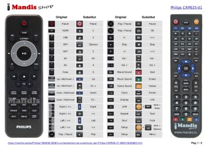 A continuació, us mostrarem la correspondència entre cada un dels botons del comandament original i el botó que realitza la mateixa funció en el comandament de substitució. En alguns casos, és possible que necessiti prémer la tecla SHIFT abans de prémer un altre botó per realitzar certes accions. Aquestes funcions addicionals sovint no s'utilitzen gaire i s'inclouen per facilitar la comprensió del comandament de substitució, o perquè el comandament original té més botons que el seu equivalent.