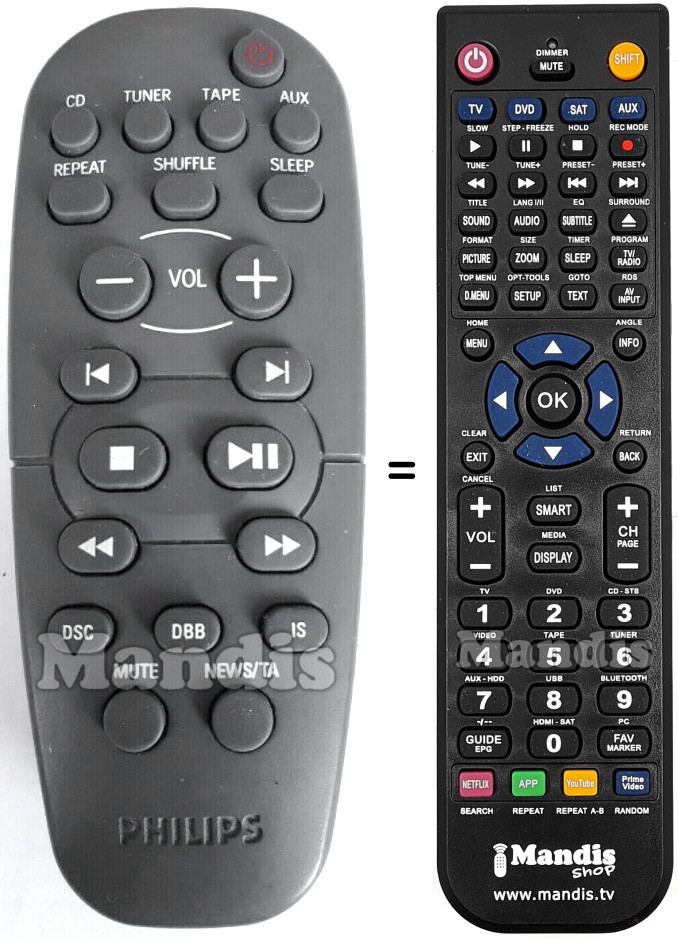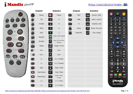 A continuació, us mostrarem la correspondència entre cada un dels botons del comandament original i el botó que realitza la mateixa funció en el comandament de substitució. En alguns casos, és possible que necessiti prémer la tecla SHIFT abans de prémer un altre botó per realitzar certes accions. Aquestes funcions addicionals sovint no s'utilitzen gaire i s'inclouen per facilitar la comprensió del comandament de substitució, o perquè el comandament original té més botons que el seu equivalent.