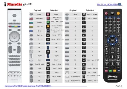 Aquest comandament a distància substitueix completament el teu RC4404 01 en totes les seves funcions. No és un comandament universal, sinó una còpia exacta del teu original.