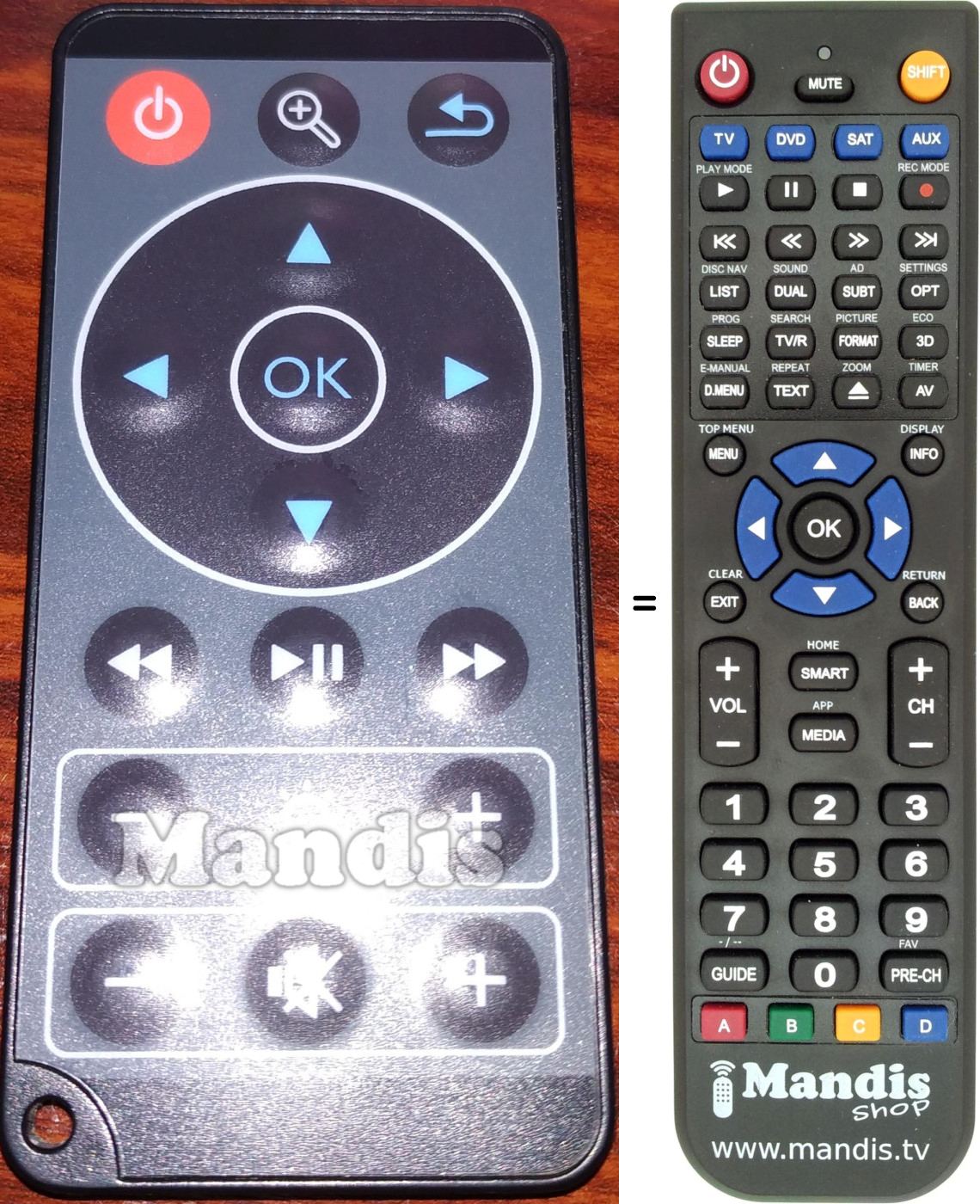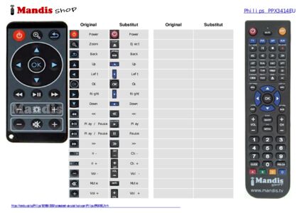 A continuació, us mostrarem la correspondència entre cada un dels botons del comandament original i el botó que realitza la mateixa funció en el comandament de substitució. En alguns casos, és possible que necessiti prémer la tecla SHIFT abans de prémer un altre botó per realitzar certes accions. Aquestes funcions addicionals sovint no s'utilitzen gaire i s'inclouen per facilitar la comprensió del comandament de substitució, o perquè el comandament original té més botons que el seu equivalent.