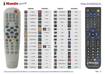 A continuació, us mostrarem la correspondència entre cada un dels botons del comandament original i el botó que realitza la mateixa funció en el comandament de substitució. En alguns casos, és possible que necessiti prémer la tecla SHIFT abans de prémer un altre botó per realitzar certes accions. Aquestes funcions addicionals sovint no s'utilitzen gaire i s'inclouen per facilitar la comprensió del comandament de substitució, o perquè el comandament original té més botons que el seu equivalent.