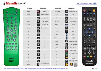 Aquest comandament a distància substitueix completament el teu RC257301 (313922888782) en totes les seves funcions. No és un comandament universal, sinó una còpia exacta del teu original.