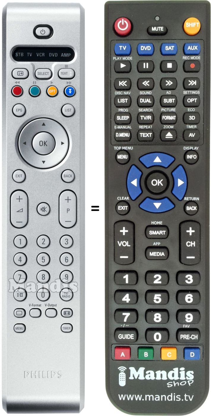 A continuació, us mostrarem la correspondència entre cada un dels botons del comandament original i el botó que realitza la mateixa funció en el comandament de substitució. En alguns casos, és possible que necessiti prémer la tecla SHIFT abans de prémer un altre botó per realitzar certes accions. Aquestes funcions addicionals sovint no s'utilitzen gaire i s'inclouen per facilitar la comprensió del comandament de substitució, o perquè el comandament original té més botons que el seu equivalent.