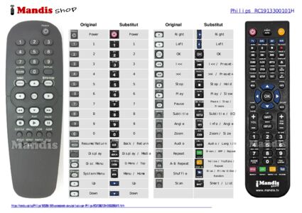 A continuació, us mostrarem la correspondència entre cada un dels botons del comandament original i el botó que realitza la mateixa funció en el comandament de substitució. En alguns casos, és possible que necessiti prémer la tecla SHIFT abans de prémer un altre botó per realitzar certes accions. Aquestes funcions addicionals sovint no s'utilitzen gaire i s'inclouen per facilitar la comprensió del comandament de substitució, o perquè el comandament original té més botons que el seu equivalent.