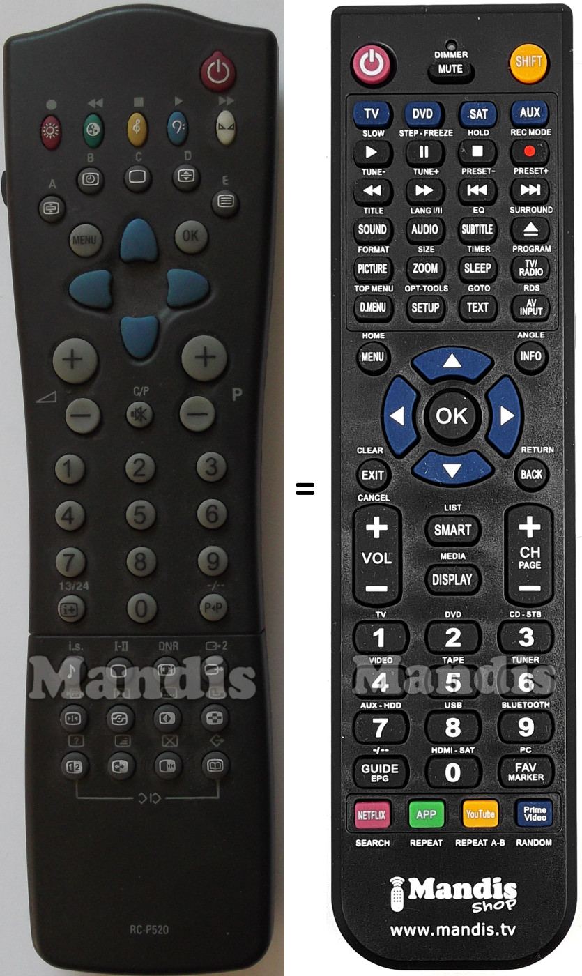Aquest comandament a distància substitueix completament el teu SBCRP520 en totes les seves funcions. No és un comandament universal, sinó una còpia exacta del teu original.