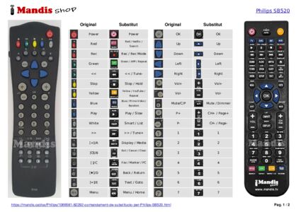 A continuació, us mostrarem la correspondència entre cada un dels botons del comandament original i el botó que realitza la mateixa funció en el comandament de substitució. En alguns casos, és possible que necessiti prémer la tecla SHIFT abans de prémer un altre botó per realitzar certes accions. Aquestes funcions addicionals sovint no s'utilitzen gaire i s'inclouen per facilitar la comprensió del comandament de substitució, o perquè el comandament original té més botons que el seu equivalent.
