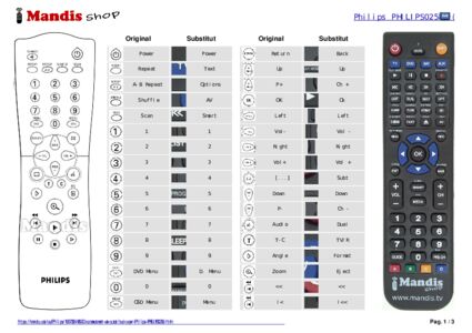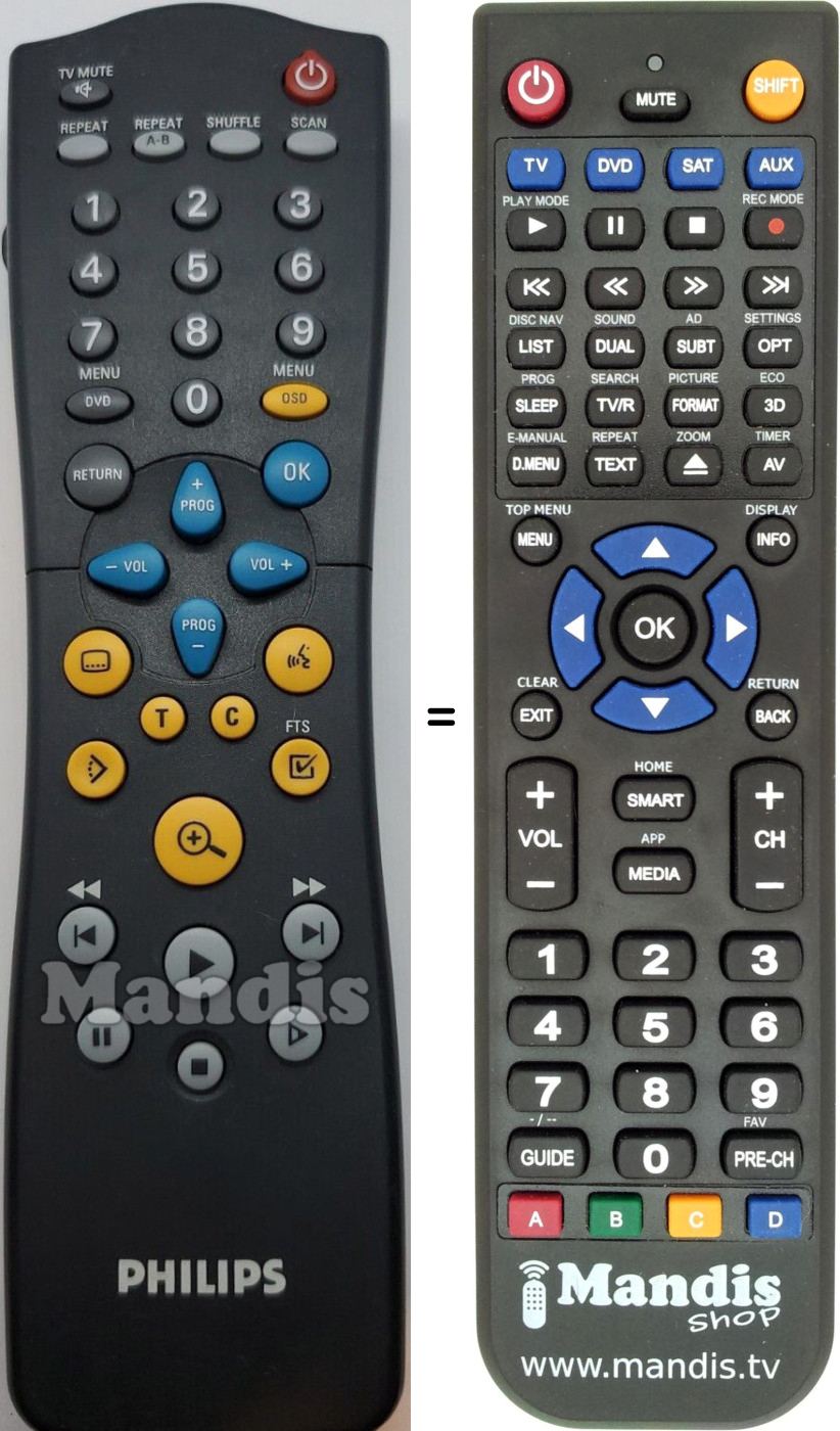 Aquest comandament a distància substitueix la majoria de les funcions del teu RC 2550 / 01 (312814711110). No és un comandament universal, sinó una còpia amb la majoria de les tecles i funcions del teu original.