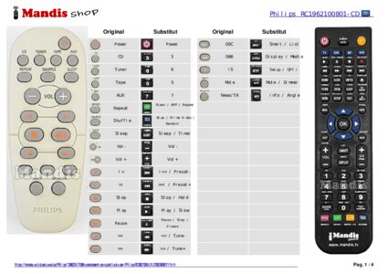 A continuació, us mostrarem la correspondència entre cada un dels botons del comandament original i el botó que realitza la mateixa funció en el comandament de substitució. En alguns casos, és possible que necessiti prémer la tecla SHIFT abans de prémer un altre botó per realitzar certes accions. Aquestes funcions addicionals sovint no s'utilitzen gaire i s'inclouen per facilitar la comprensió del comandament de substitució, o perquè el comandament original té més botons que el seu equivalent.
