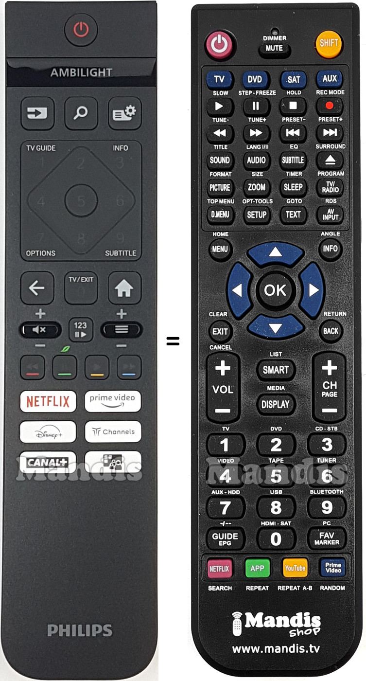 A continuació, us mostrarem la correspondència entre cada un dels botons del comandament original i el botó que realitza la mateixa funció en el comandament de substitució. En alguns casos, és possible que necessiti prémer la tecla SHIFT abans de prémer un altre botó per realitzar certes accions. Aquestes funcions addicionals sovint no s'utilitzen gaire i s'inclouen per facilitar la comprensió del comandament de substitució, o perquè el comandament original té més botons que el seu equivalent.