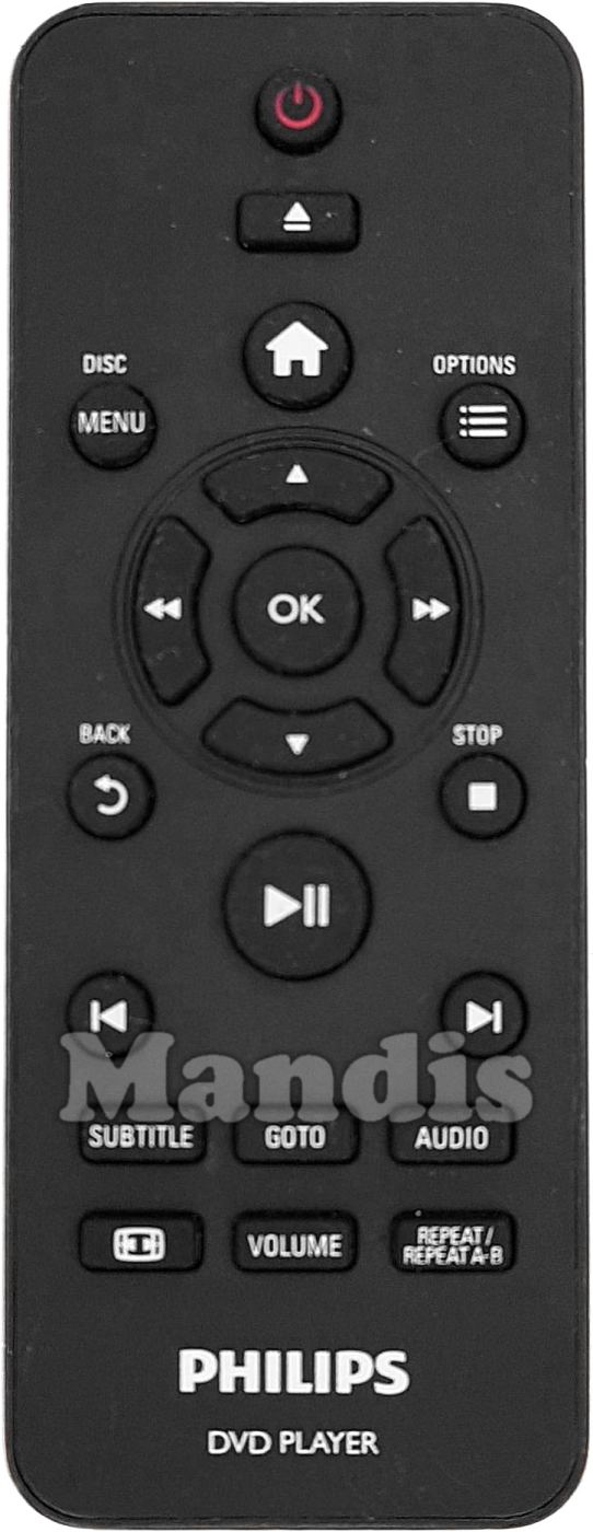 Power, Eject, Menu / Disc, Home, Options, Up, Down, Right / >>, Left / <<, OK, Back, Stop, Play / Pause, I<, >I, Subtitle, Goto, Audio, Aspect, Volume, Repeat / Repeat A-B